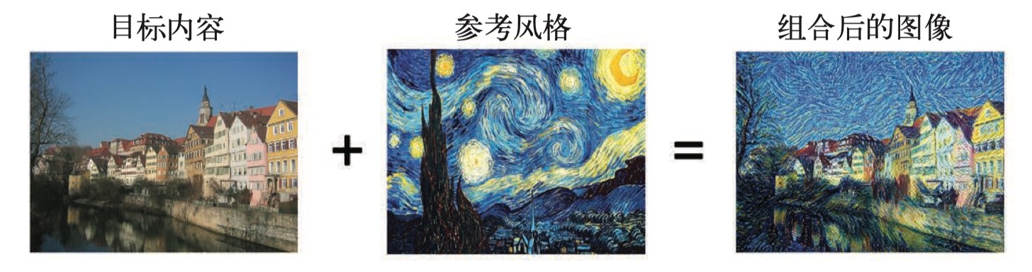 return tv_weight * (hsum + wsum)在风格迁移中,我们需要最小化的损失为内容损失、风格损失和全变差损失这三部分之和。 接下来,只需要将这三部分组合起来,利用梯度下降法来得到最后的图像即可。具体可以参考 StyleTransfer-Pytorch.ipynb